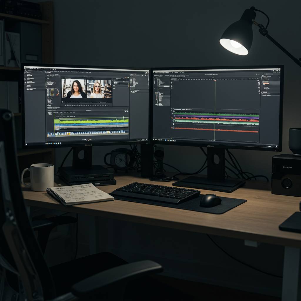 動画編集の効率を飛躍的に向上させるには、適切な作業環境と実践的な時短テクニックが不可欠です。プロの編集者が日々活用している方法を知れば、あなたの作業効率も驚くほど改善するでしょう。まず環境面では、デュアルディスプレイ以上のマルチモニター設定が基本です。タイムラインとプレビュー、素材ビンを別々に配置することで視線移動が最小限になります。Adobe Premiere ProやFinal Cut Proなどの編集ソフトでは、作業スペースのカスタマイズ機能を活用し、よく使う機能にすぐアクセスできるレイアウトを作成しましょう。